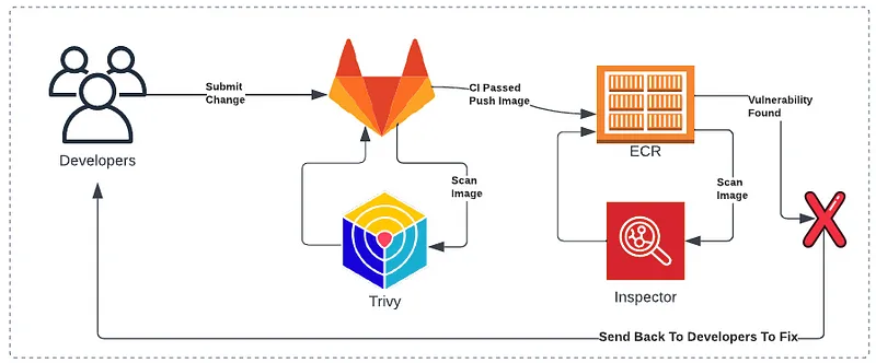 Well, I like GitLab, but in an AWS-focused organization you are likely to use ECR and Inspector since they are FedRamp approved, easy to integrate, and easy for the team to consume. I wish the vulnerability data from the inspector-scan API call was a little easy to parse through, but with time I think a solution would be easy enough to create.