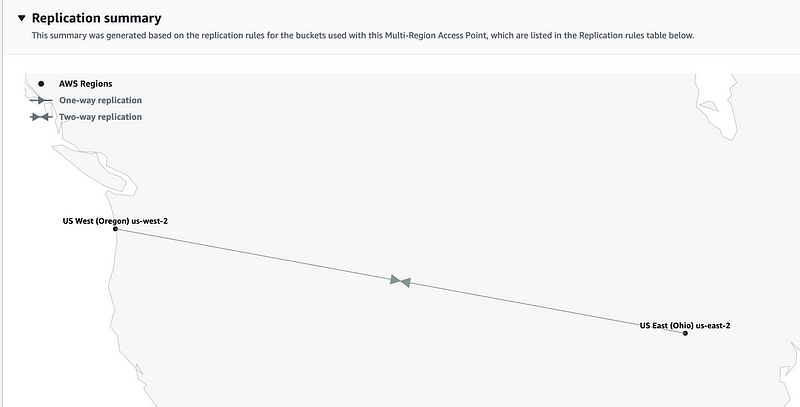The Terraform for this is a little more complex. Mainly in the form of the inclusion of the aws_s3control_multi_region_access_point resource and the replication configuration to support bi-directional replication of the buckets.